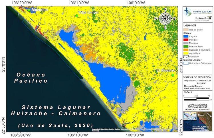 Land use maps from 1990 to 2020 show a reduction in mangroves, while dry forest and secondary vegetation (scrub) have been incorporated into the farmland surrounding the lagoon system. The water surface varies depending on the rainfall recorded in each period, however, the current average depth is just 60 centimeters.