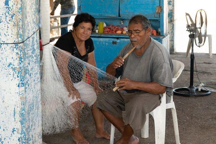 A fisherman from the Slaughterhouse Cooperative weaves his nets. Photo 2: Rafael Narval.