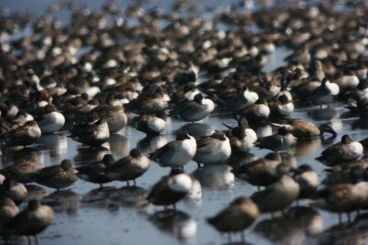 Flock of swallow ducks (Anas acuta), caught in the Huizache Caimanero lagoon system. Migratory species from Alaska, Canada and the United States. Photo: Guillermo Juan Fernández Aceves.