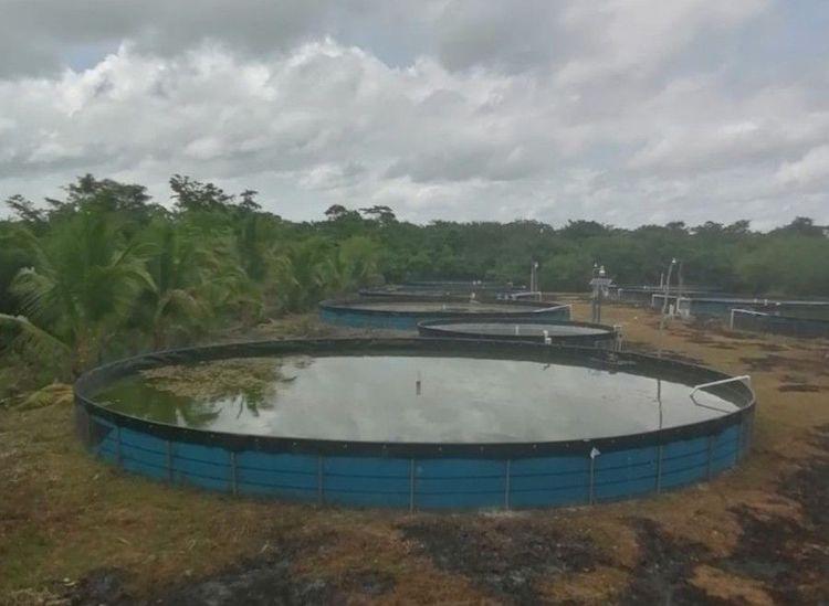 Tilapia aquaculture projects with circular geomembrane ponds, in the “Jobal” ejido, of the Municipal Council of Sabancuy, Carmen. (Photo: Adolfo Maldonado)
