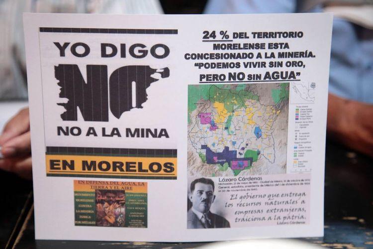 Bulletin of the Morelense Anti-Mining Movement for the damage to the Esperanza Silver mining company. Credit: Margarito Pérez Retana/ Cuartoscuro