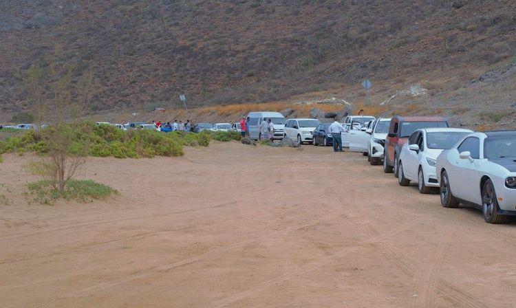 First week of August, it's 1:45 p.m., and the line of cars extends for more than 200 meters outside the access point to Balandra Beach, in La Paz, Baja California Sur. Some wait outside vehicles with an umbrella to tolerate the temperature of more than 30 degrees Celsius.