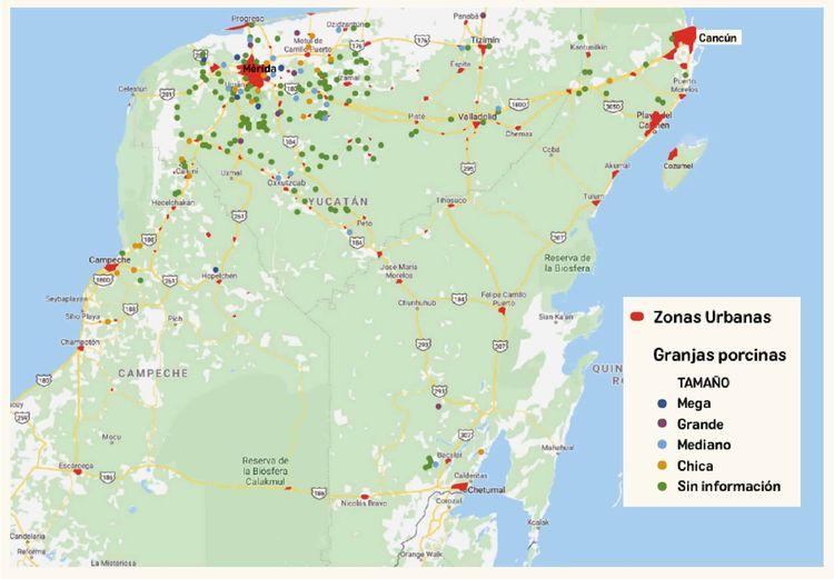 Location of pig farms in the Yucatan Peninsula. Source: Greenpeace Mexico.