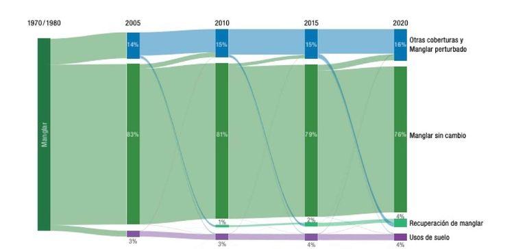 — Only 76% of the hectares of mangrove forest that existed in the 70s and 80s are preserved. According to the Conabio book, initial mangrove areas continue to be lost at a relatively constant rate. Why?