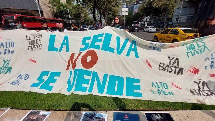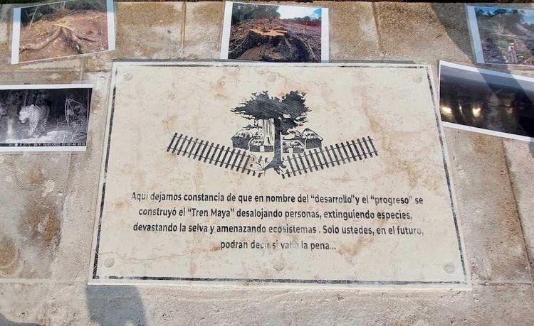 “Here we record that in the name of 'development' and 'progress', the Mayan Train was built, evicting people, extinguishing species, devastating the jungle and threatening ecosystems,” reads the legend placed on a plaque on Paseo de la Reforma Avenue, in Mexico City, by environmentalists who oppose the megaproject in the Yucatan Peninsula, promoted by the federal government.