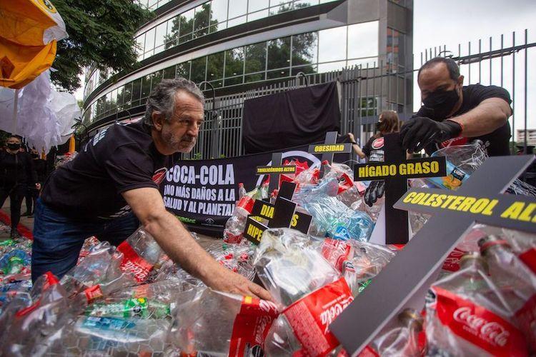 A principios de septiembre un grupo de activistas de Greenpeace y El Poder del Consumidor colocó simbólicamente decenas de envases afuera de las oficinas centrales de Coca-Cola, en la colonia Bosque de Chapultepec, de la Ciudad de México. “¡No más daños a la salud y al planeta”, decían las pancartas colgadas en la entrada del corporativo.