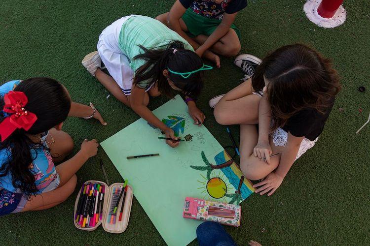 Comunidad escolar realizan carteles sobre asuntos de conservación de la naturaleza. Foto: Grecia Cetina