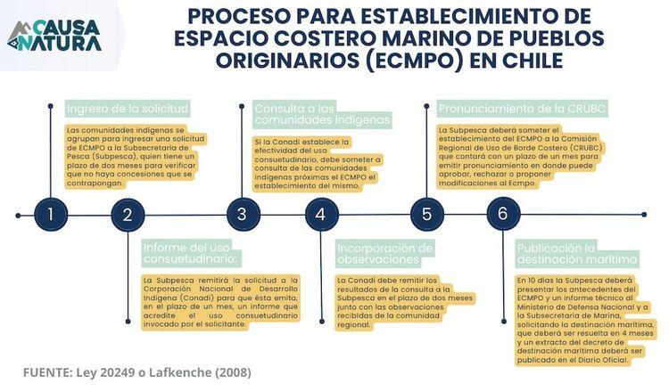Y aunque la Ley Lafkenche establece plazos muy concretos en el proceso para establecer las ECMPO, Yacqueline Montecinos señala que debido al gran número de solicitudes, las instituciones responsables no se han dado abasto para atenderlas todas y los tiempos de aprobación se han vuelto más extensos de lo que estipula la Ley.