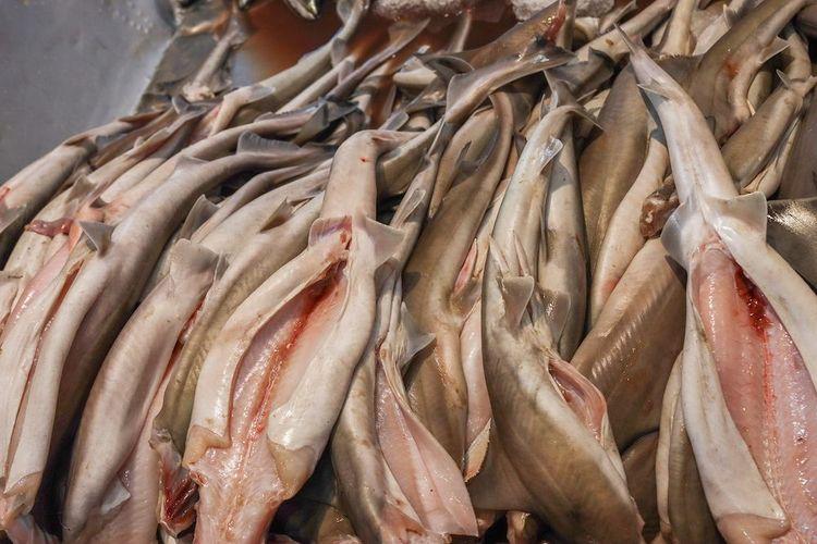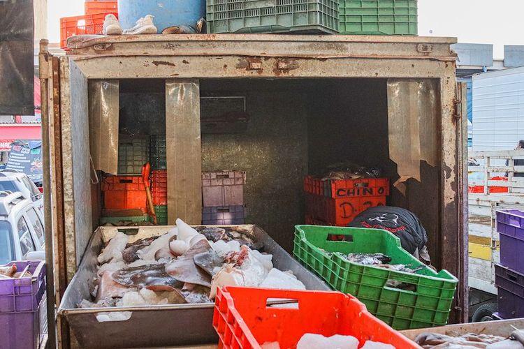 Tiburones de talla chica son vendidos en La Nueva Viga. Foto: Patricia Campos.