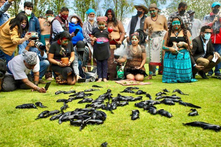Las autoridades argumentaron que se realizó bajo la asesoría de investigadores de la Universidad Nacional Autónoma de México (UNAM), pero fueron las imágenes que se compartieron en redes sociales las que desataron críticas de la ciudadanía sobre el manejo de los anfibios, los cuales permanecieron fuera del agua y expuestos al sol para ser fotografiados.