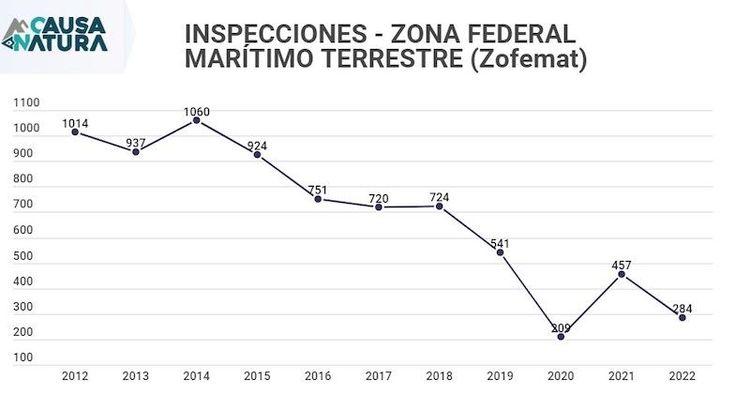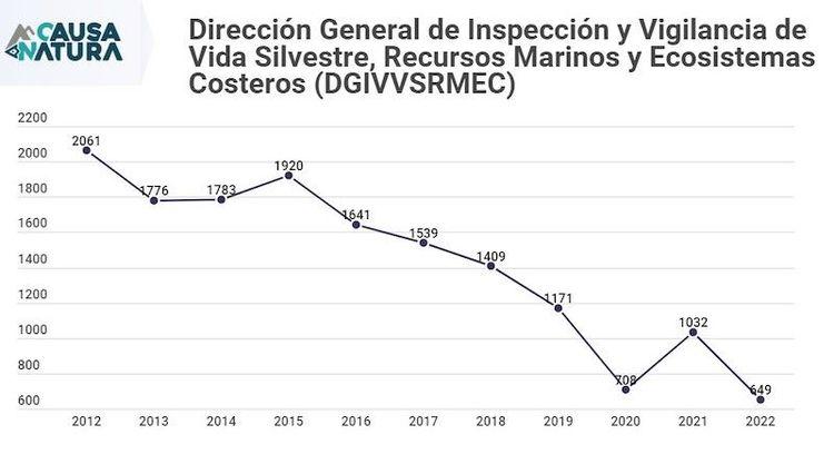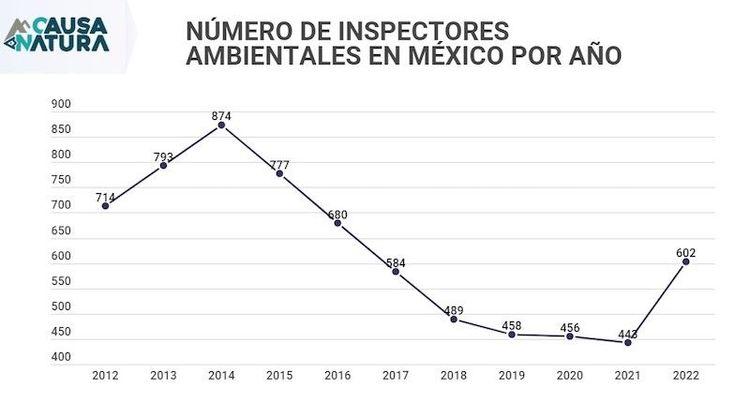 Para el 2012 la Profepa contaba con 714 inspectores ambientales, alcanzando su pico más alto en 2014, con 874; sin embargo, al siguiente año comenzó la reducción.