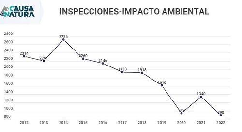 La abrupta baja en los recursos económicos para la operación de la institución se refleja en el número de inspecciones realizadas para atender, investigar y sancionar casos de posibles delitos ambientales.