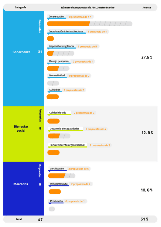 disponibilidad de los recursos marinos. AMLOmetro Marino continuará con el monitoreo de las acciones puntuales del