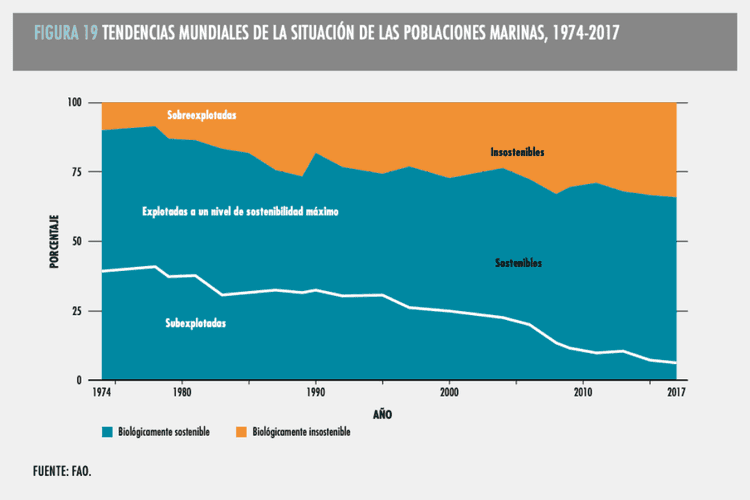 Tendencias mundiales sobre la situación de las poblaciones marinas del informe SOFIA 2020.